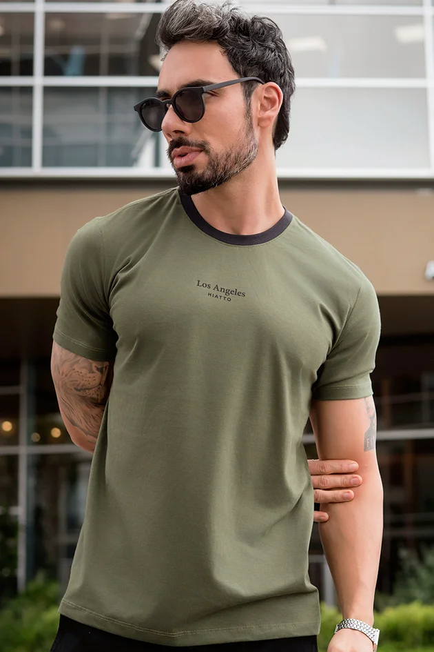 A Camiseta Masculina Hiatto é a escolha ideal para quem busca estilo e conforto em qualquer ocasião. Confeccionada em meia malha, fio 30.1 penteado, 100% algodão, garante toque suave e leve durante todo o dia. Seu design moderno traz estampa minimalista combinada à gola em ribana contrastante, adicionando um detalhe sofisticado e versátil para elevar composições casuais com autenticidade.